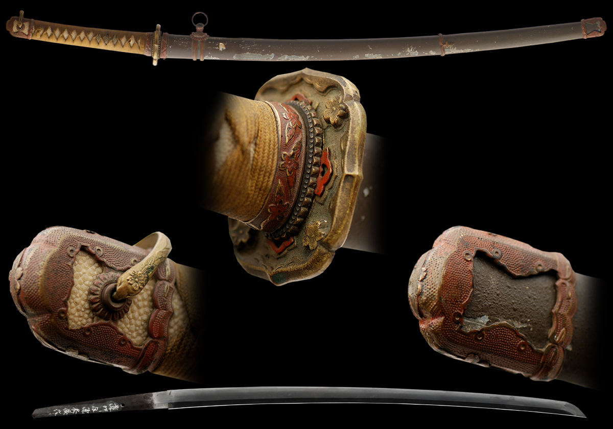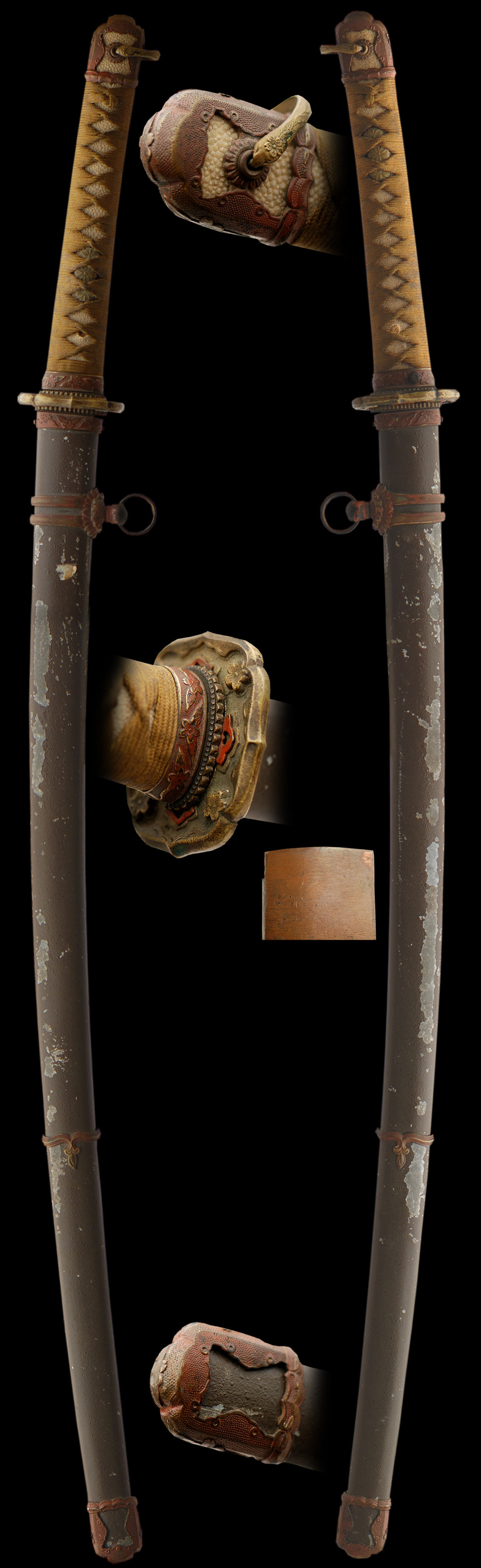 This is a WWII era sword made in the later part of the war. The mounts are sometimes referred to as Shin-gunto . Both the mounts and the sword are in fair condition and a rare treat for the WWII era Japanese sword collector.