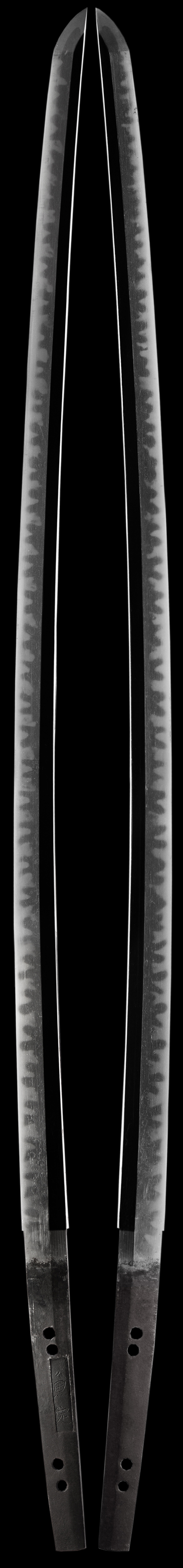 This rare beautiful sword needs to be submitted at some point to Shinsa. It has an inlaid signature known as � GAKU-MEI � to the famous school of Mino Smiths � Kane Sada �. The work appears to be correct to the signature but a few different generations signed this way.