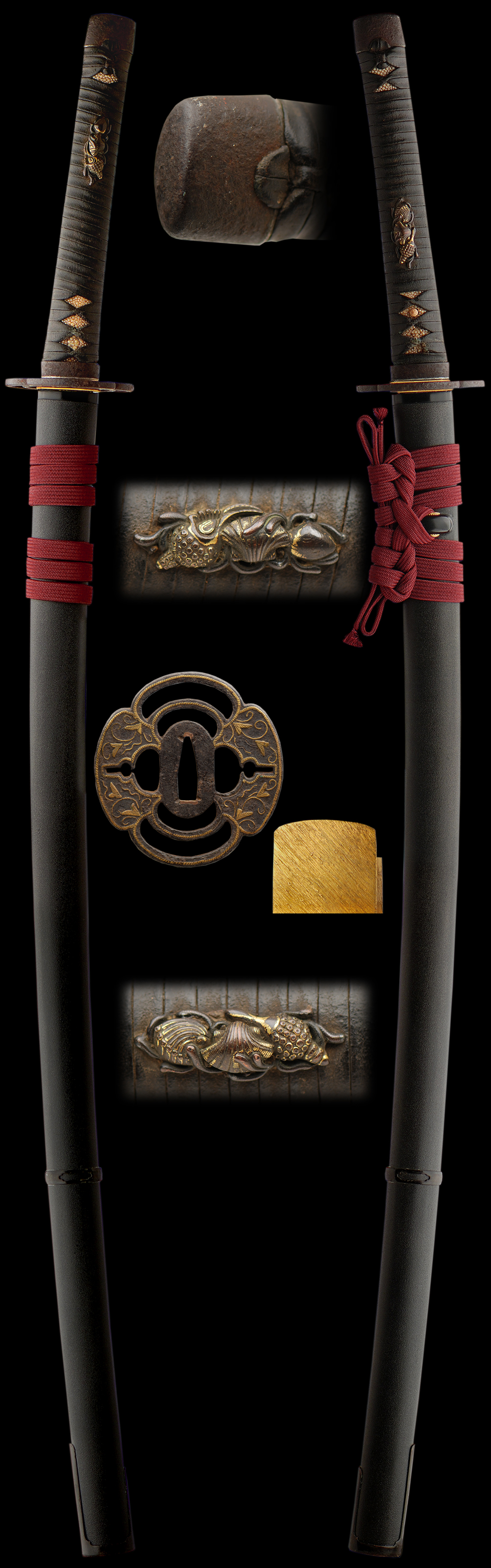 The mounts are pure Samurai style mounts in iron with a clamshell menuki and vine-like tsuba