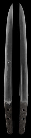 This sword is a beautiful tanto of gunome midare in itame with classic old koto horimono of ken. This very fine blade dates back to the 1300's and has a very good history and is considered by many as a very desirable school to collect. For such an early tanto dating to the 1300's it is also very healthy and robust. This is truly a wonderful koto era tanto from the Hirado Sa line of swordsmiths.