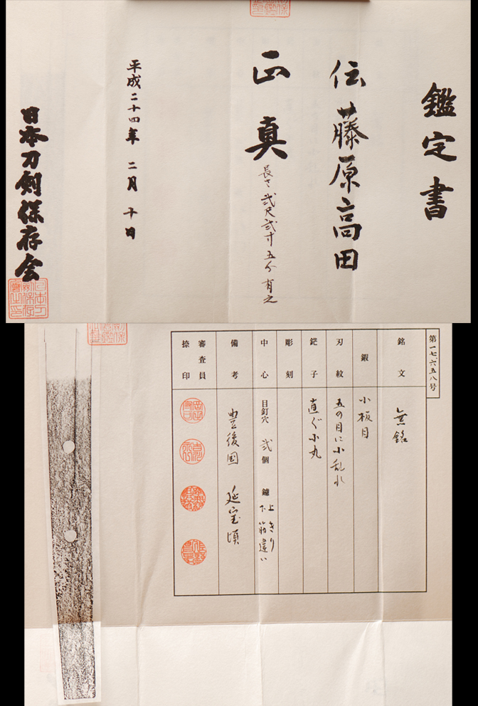 The sword is a 26+" and is attributed to fujiwara takeda from the Shinto period mounted in shirasaya and koshirae. A great package papered and polished and ready for the collector.