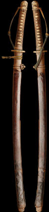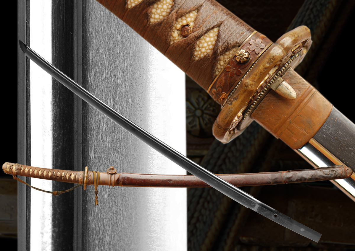 This sword was a very early katana mounted later to be carried in WWII by a Japanese soldier. The soldier must have had it in his family for many generations. Many Japanese soldiers in the day wanted to carry ancestral swords to war. It was at some point confiscated and brought home by an American soldier. The quality is good and the temper/hamon is active and well done. If this sword were in a fresh polish it would look even better. This blade is forged well and also comes with papers attesting to its age, school and quality.