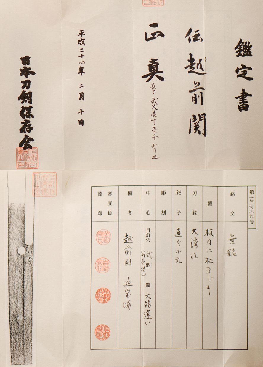 Nakago: Suriage 2 mekugi ana, yasurime Sujikai