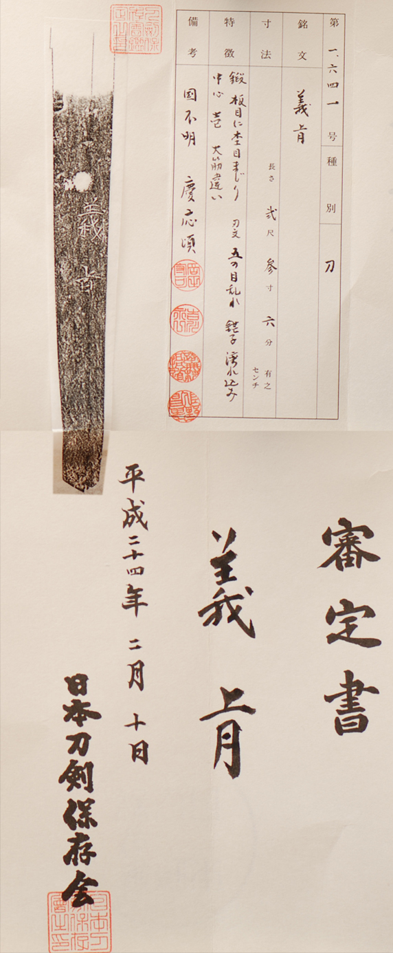 Nakago: Ubu 1 mekugi ana, yasurime Sujikai