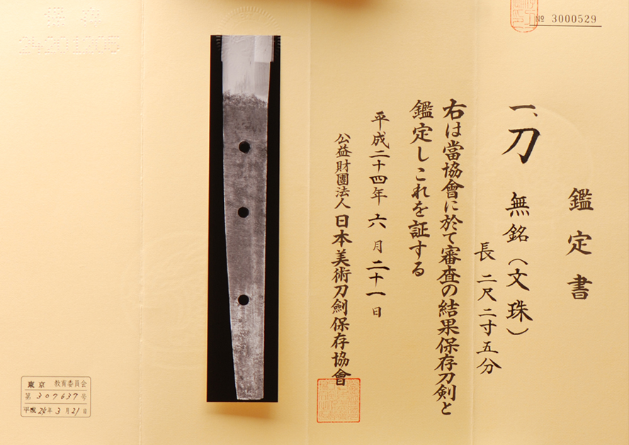 As a result of a shinsa at this organization, the above item has been designated a Hozon Token, and is confirmed as authentic.