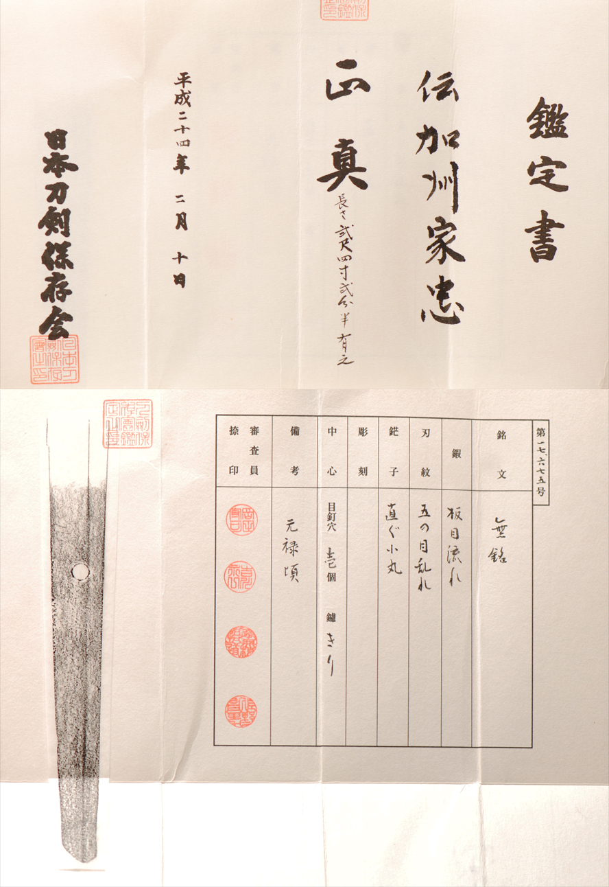 Nakago: Machi-okuri 1 mekugi ana, yasurime Kiri