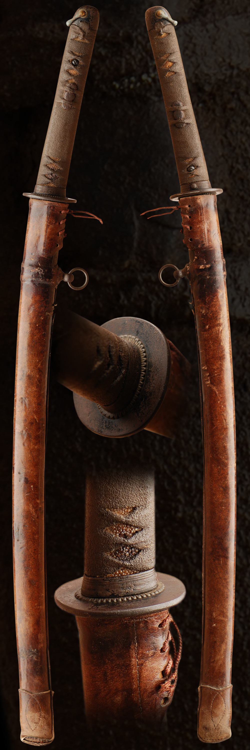 This sword is in excellent condition and has a great lineage. It is loaded with activity and has wonderful rustic WWII mounts with a very good blade inside. It is all original. This is a hand forged sword made using traditional methods and not a run of the mill oil tempered military sword.