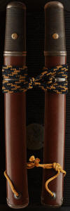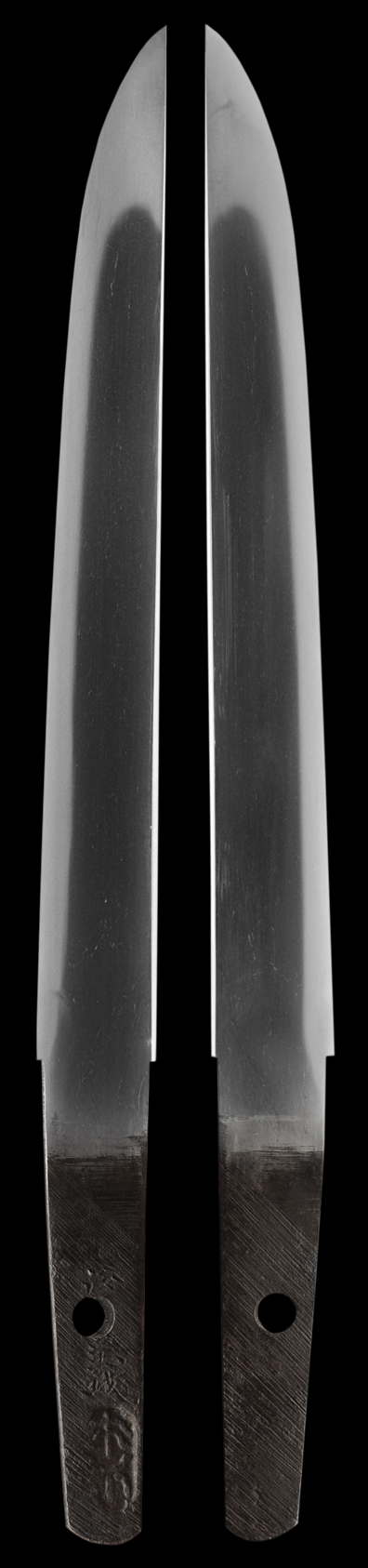This tanto is in very good polish and has a very nice koshirai. The blade is in shirasaya and a stunagi was made for the mounts. More research should be done on this blade as masayoshi was a good smith. This blade was owned for many years by one family. The family say that it had very old papers but they have been lost for many years. We can not dispute nor confirm this signature with out it going to a shinsa again, so it will be priced accordingly. What we can say is that overall this is a fine shin-shinto tanto.