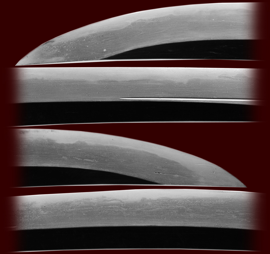 This is an interesting style wakazashi that is very old (1400's) and is overall in good condition for its age. The signature reads masamune but this is not signed like the famous masamune. A great many smiths signed using this name. This sword is good starter sword for a collector. You can study the hamon and hada for details. The hamon has very good activity and is worth preserving. The blade has a little course hada that is not going to take away much from the sword but this sword will be priced very fair for a new collector.