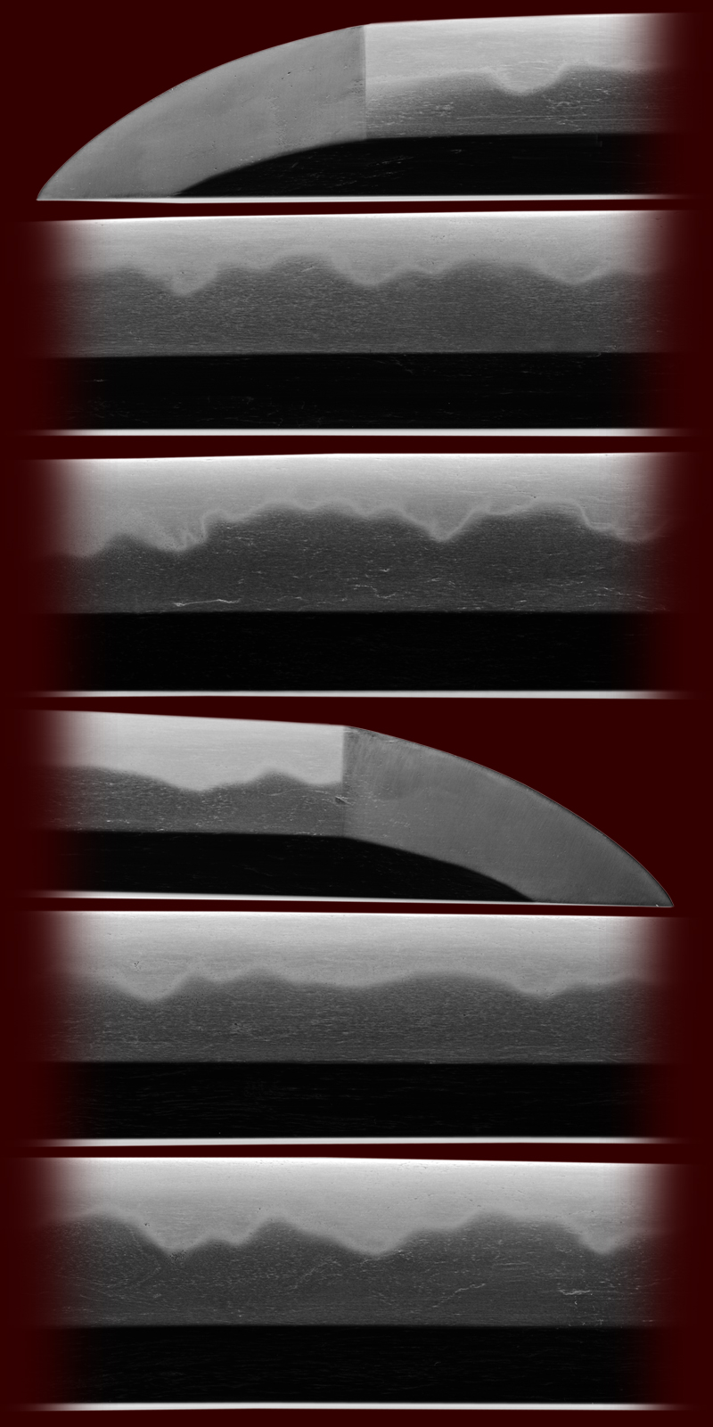 This is a very well made blade by the seki sword smith Kanehisa. The hamon is very well made. It is beautiful and has good activity throughout. This is a koto katana in very good condition. The hada is nicely forged with some coarseness within it as is common with some Seki swords. It was apparent this sword was used in battle because it received a minor blow in the shinogi from another sword which did not damage the blade at all. This adds a little more historic importance to the sword.
