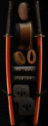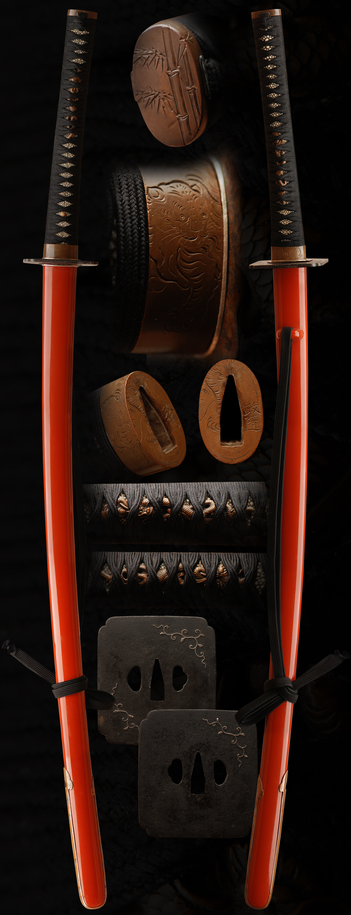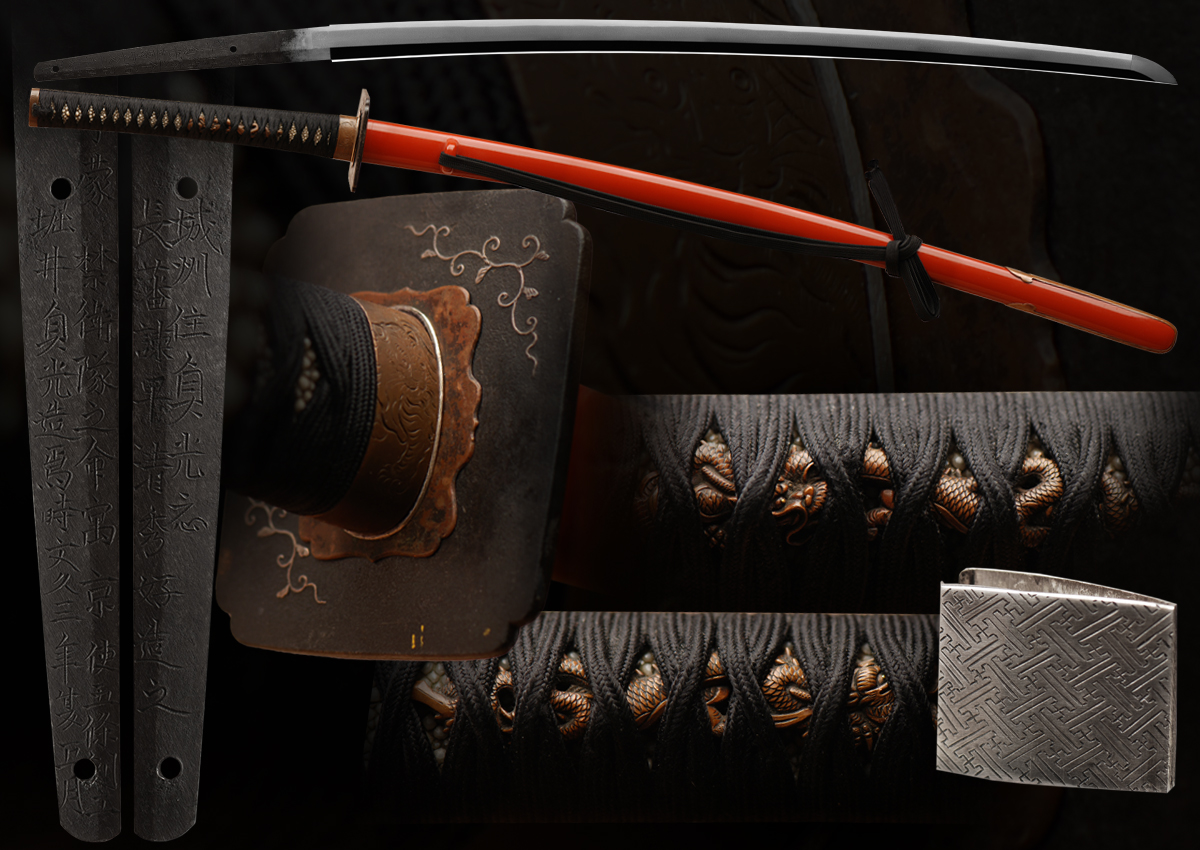 This sword is an exceptional part of Japanese history. The quality and care that went into making this special ordered sword is important to note. The hamon has rich nie and nio mix with many hataraki/activity within. The hada is tightly forged and is bold looking. To make such a long sword like this requires a high skill level from the smith in order to avoid flaws in the forging of this daito. The mounts are original and also powerful looking. The saya was restored to its original satsuma style color. The tsukamaki has been also restored and is sound. The fuchi and kashira are very large and out of the norm. They are cooper and the design of the tiger was cut even to the inside of the fuchi. The set is also signed. The menuki are also extreamly large dragons in copper and of good quality. It has two sets of seppa, one in copper to match the copper fittings and the other in silver to match the silver inlay in the tsuba. Also note that the tsuba is very large and not of the normal size. Swords like this were actually very desirable and carried during this time period. This very large style of swords compares with the swords made during the Nambokucho era ( 1333-1391). This sword comes with papers from the NBTHK and also has a fine sayagaki done by Tanobe Sensei in Japan. No expense was spared on this sword, from the making of it to the restoration of it. Not many swords like this are regularly found on the open market, many are in museums and high end collections.