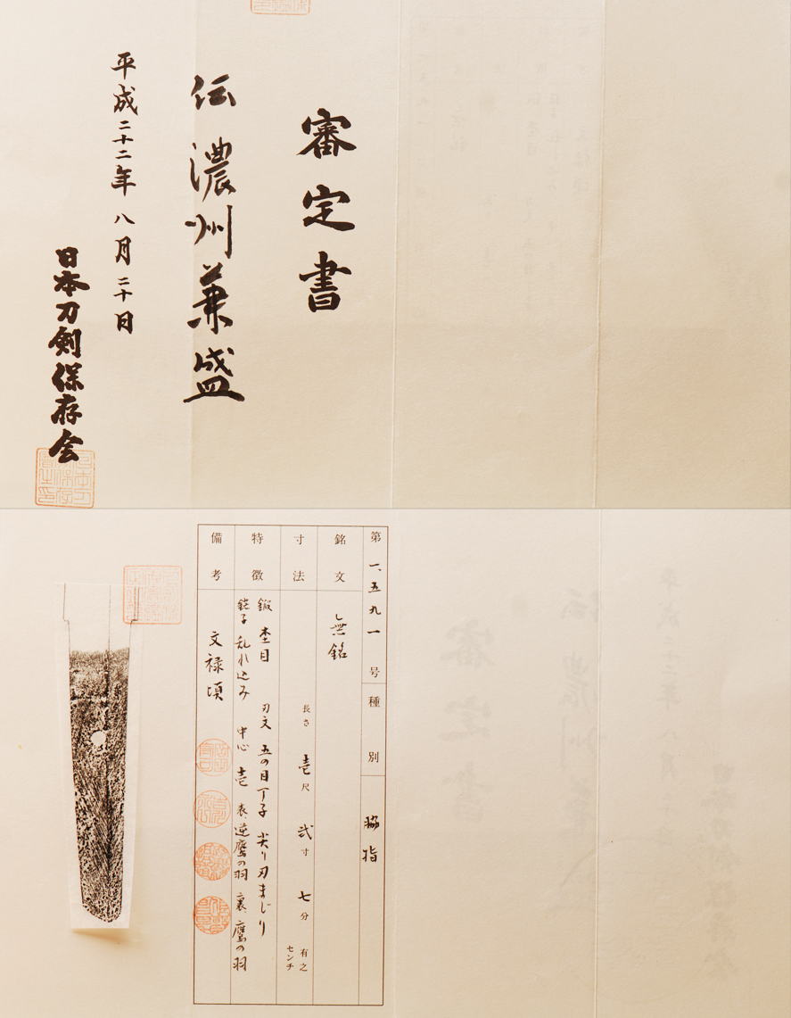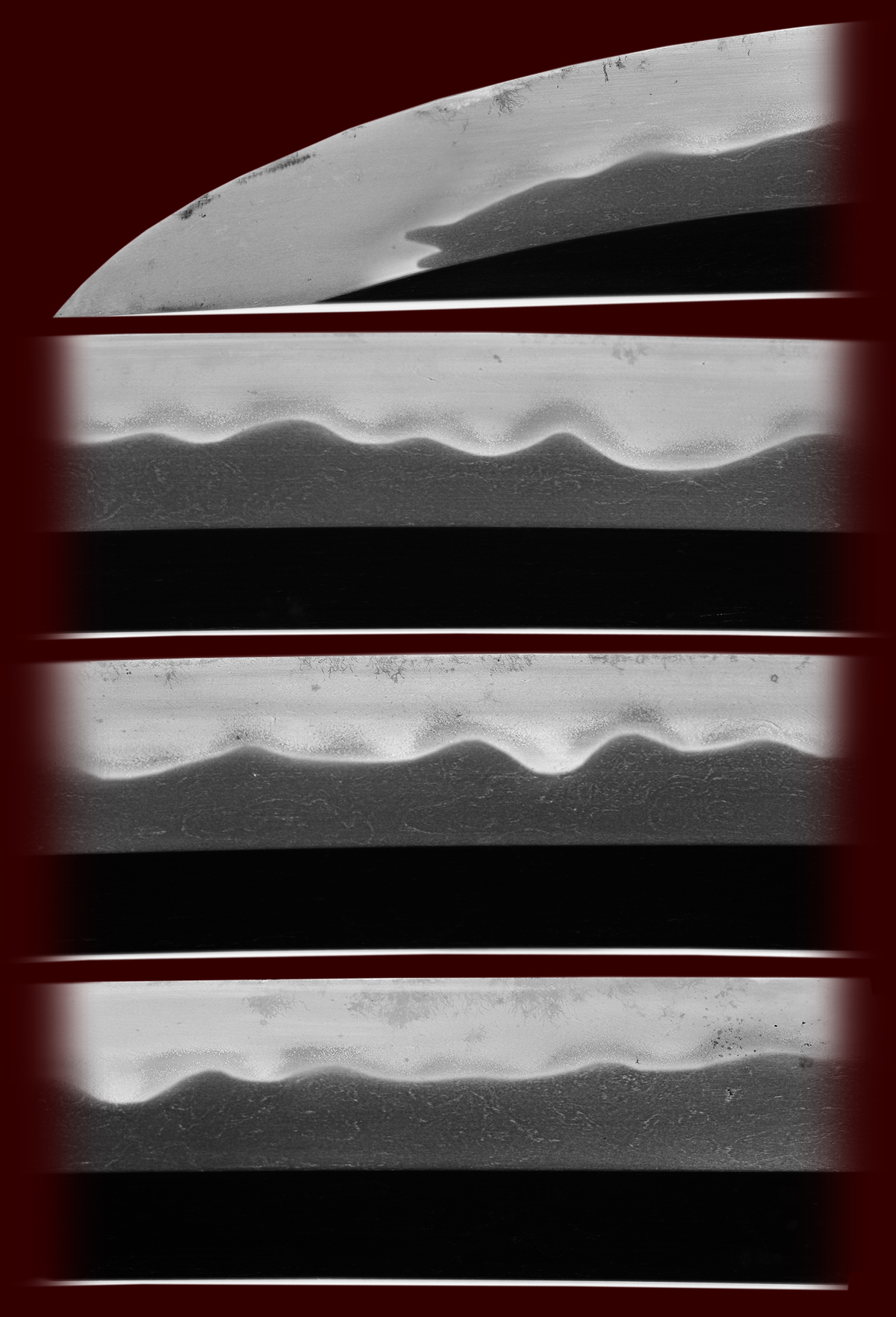This is a mino school blade papered to Kanemori. This sword has good activity in the hamon and hada that is clearly visible in the pictures. This is a good sword for a new collector that wants to study a solid collectable blade in hand. It is in good polish to appreciate the sword and comes with papers attributing it to a koto era smith from the 1500's.