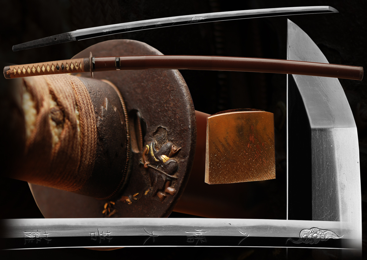 This is a long Daito at almost 29" long. The sword has a minor flaw but is still very strong and beautiful. The hada has a milky appearance and the hamon has great activity. The carving on the sword is very nicely done and adds a lot to the sword. This sword will pass if submitted to shinsa some day. The koshirai are also all original and of good quality. This katana has a good balance and is also a great candidate for a iaido sword as well as a collectable sword from the 1700's.