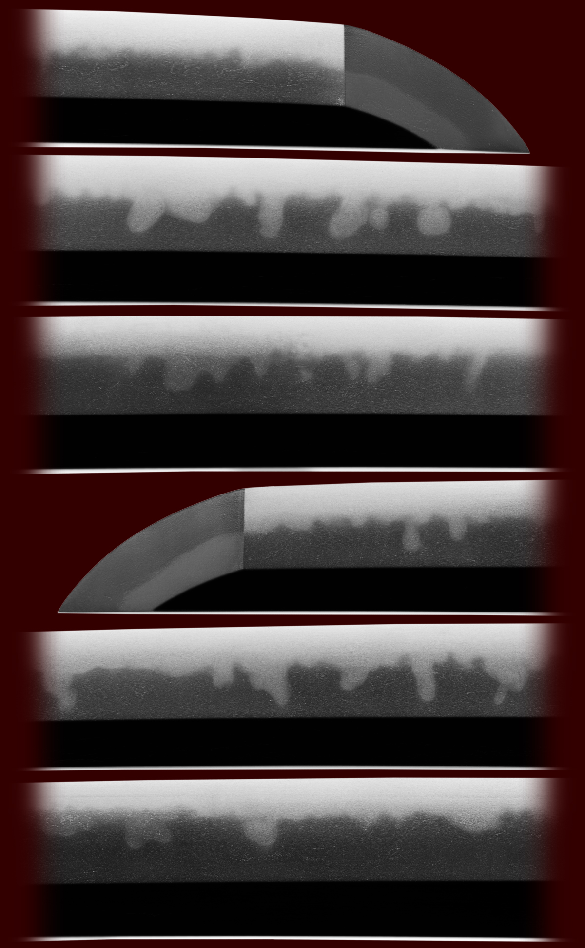 This wakazashi is almost katana length. It is wide and strong looking. The sword is flawless and comes with Tokubetsu papers and sayagaki from Tanobe Sensei of the NBTHK. This blade is in shirasaya and has a solid silver habaki. The quality of the hamon is exceptional and has many hataraki/activaty within it. The hada is very tightly forged and rich looking. Mitsuhira is now thought to have been the older brother of Tsunemitsu. He received the Dewa no kami titel and was later known as dewa nyudo. He was famous for choji ha. It has been said that the soshu den had been very prosperous after keich era, but a revival of the bizen ichimonji den was due to Korekazu and Mitsuhira.