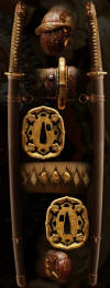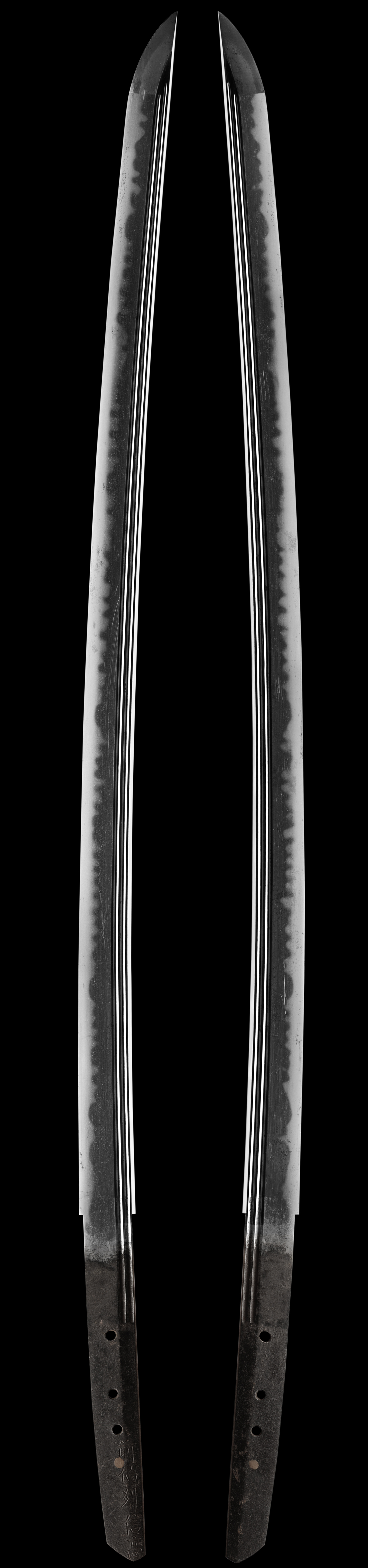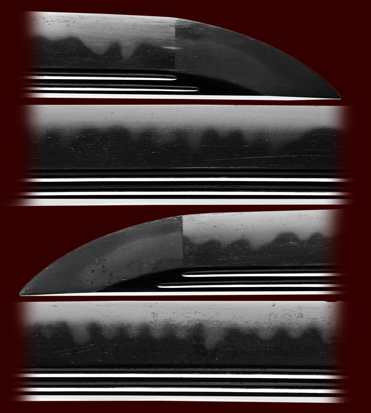 This is a jewel waiting for a polish. The second generation Nobutaka was rated as Jo Saku level. That is very good rating for a smith and places this work on a higher level than the average smith. The sword is sound and in had you can see good activity. This sword is guarantee to pass shinsa and we fee it has a 90% or better chance of polishing out perfectly if we do it. The sword comes in gunto koshirai that is also very nice and complete. There is a lot of information on this smith on the net and in books. Overall this is wonderful sword from a high level smith.