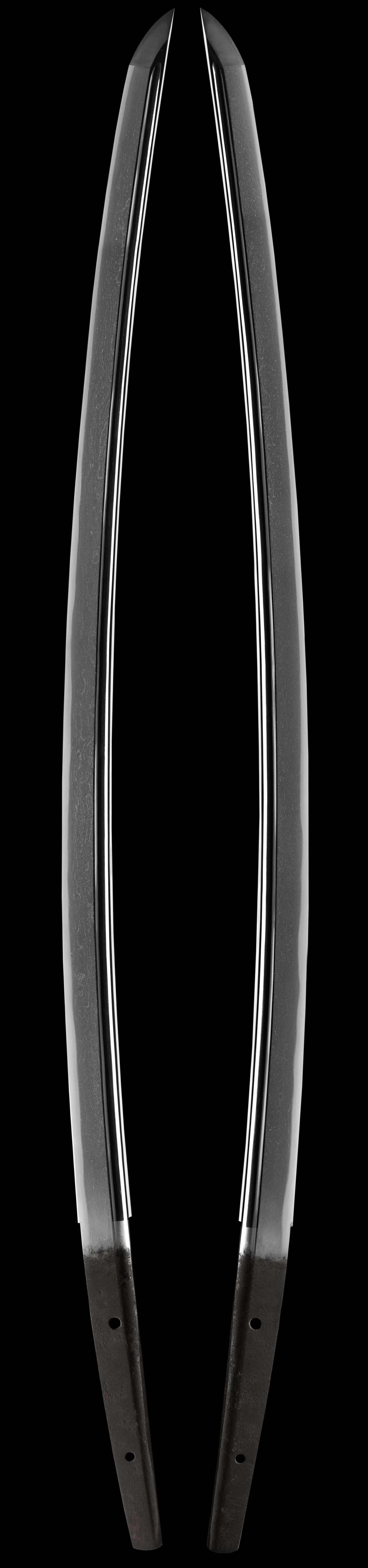 This fine blade comes with highly desirable tokubetsu hozon paper attesting to the quality and importance of this sword. Many ko mihara blades have received juyo level papers. The work on this sword is clearly of great quality. The hada and hamon have a yamato feel. The hamon has many hataraki and is nie deki mixed with some nioi. The sword comes with elaborate koshirai and a very good quality lacquered saya that is in overall good shape for its age. It comes in original mounts and with tokubetsu papers attesting to the quality and school of production.