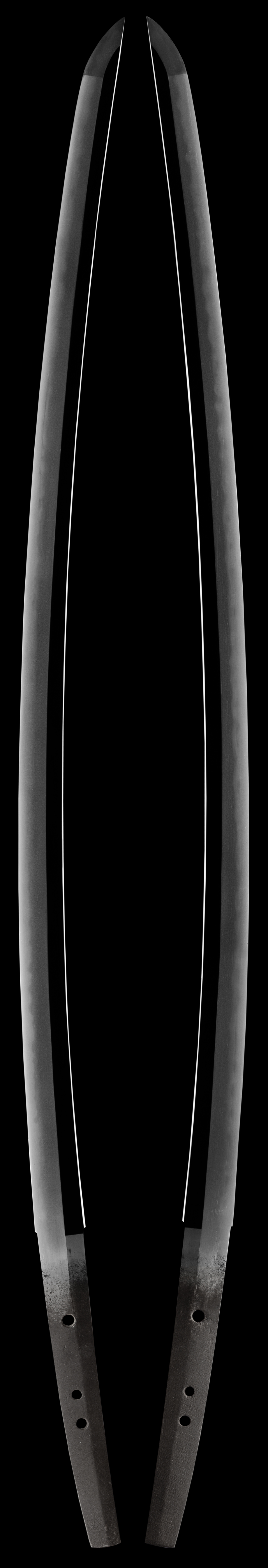 Nakago: Three mekugi ana, yasurime katte sagari