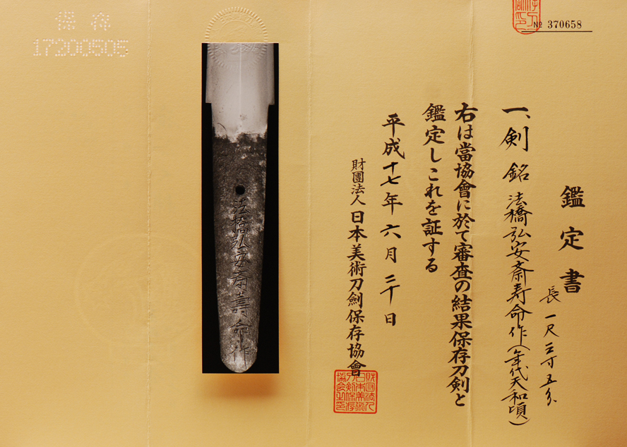 As a result of a shinsa at this organization, the above item has been designated a Hozon Token, and is confirmed as authentic.