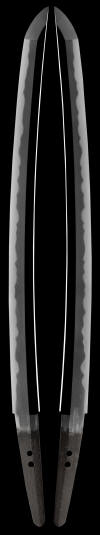 Frequently displayed characteristics of a Kunimichi blade are: deep nei, noi, utsuri, ji nei, chikei, kinsuji, inazuma, sunagashi, ashi, and tobiyaki. The most often seen hamon is gonome midare. Horimono are rare. His normal yasurime is sujichigai style. His superb hada, that is most frequently itame/mokume with thick ji nei and jikei, it has the appearance of being moist. Some of his blades have a bluish color. This is seldom seen in Shinto blades, and is reminiscent of the blades of the Kamakura and Nambokucho periods.Dewa Daijo Kunimichi is considered to be among the "best of the best" (jo-jo saku) of the Shinto period. The N.B.T.H.K. Juyo award books refer to him as possessing "superb techniques." His blades are graceful and strong, and are highly sought after.
