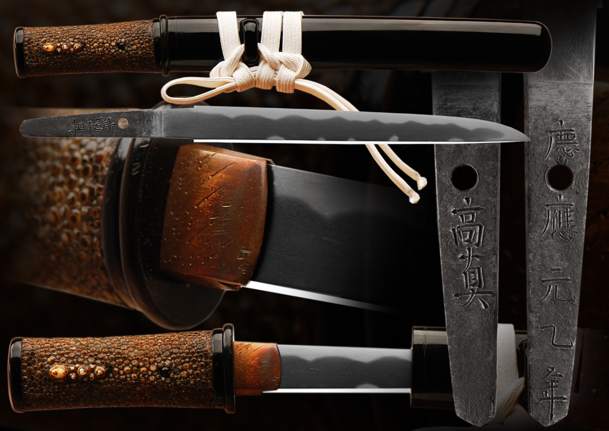 This is a very good quality Tanto from the shi-shinto era. The mounts are in good condition. This sword has a very lovely feel and look to it. The hamon is well made and the hada is also well made and tightly forged. This tanto has no papers and is priced accordingly. More research should be done on it. Overall it is a very well made tanto in dress koshirai/mounts.