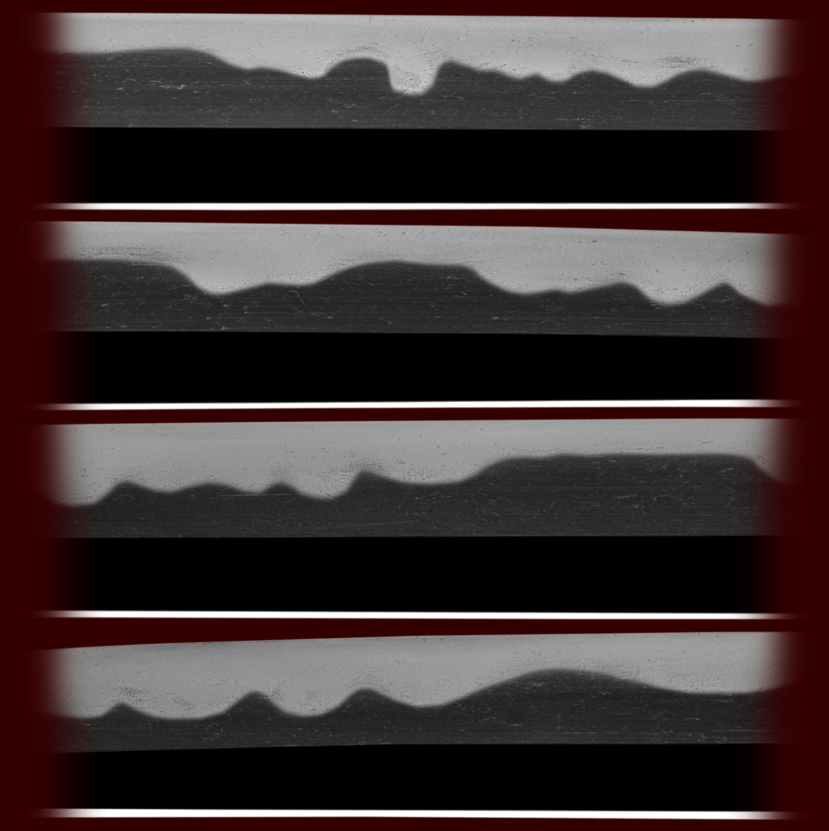 This fine wakazashi has great workmanship and a beautiful gunome midare hamon. It is in original polish and the shirasaya is signed. The sayagaki has an attribute to the smith � Mino No Kuni Kanemitsu. Unfortunately the pictures not do justice to this sword. The hamon is very nicely done with a thick nioi-guchi. It has many hataraki and ara-nie appear. The hada is very well forged with a milky looking color of itame with masame. This early wakazashi also has an elegant shape and is very well balanced. The mounts are in very good shape and add to the overall value of this sword. The fittings are sounds and have a more simple and traditional look and display very well. Overall this is a fine Japanese wakazashi.
