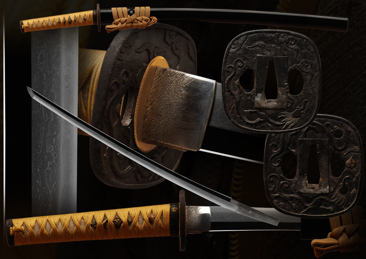 This is a beautifully made o-wakazashi in beautiful mounts. The mounts are very well made. The koshirae is not fancy but are more of a true samurai style and very utilitarian. They are plush looking without a flashy appearance.