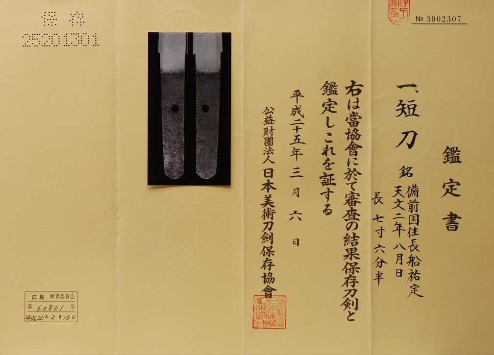 Nakago: ubu signed and dated