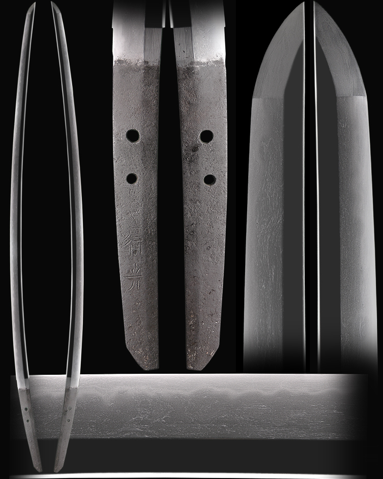YUKIMITSU KASHÛ [KYÔROKU 1528 KAGA] SUEKOTÔ CHÛJÔSAKUHe is called Sengorô, and he also produced at Etchigo Kashiwazaki. Izumi [TN: Also pronounced "Sen"] is said to be a place name in Kaga. Hamon is sugu ko-ashi iri.