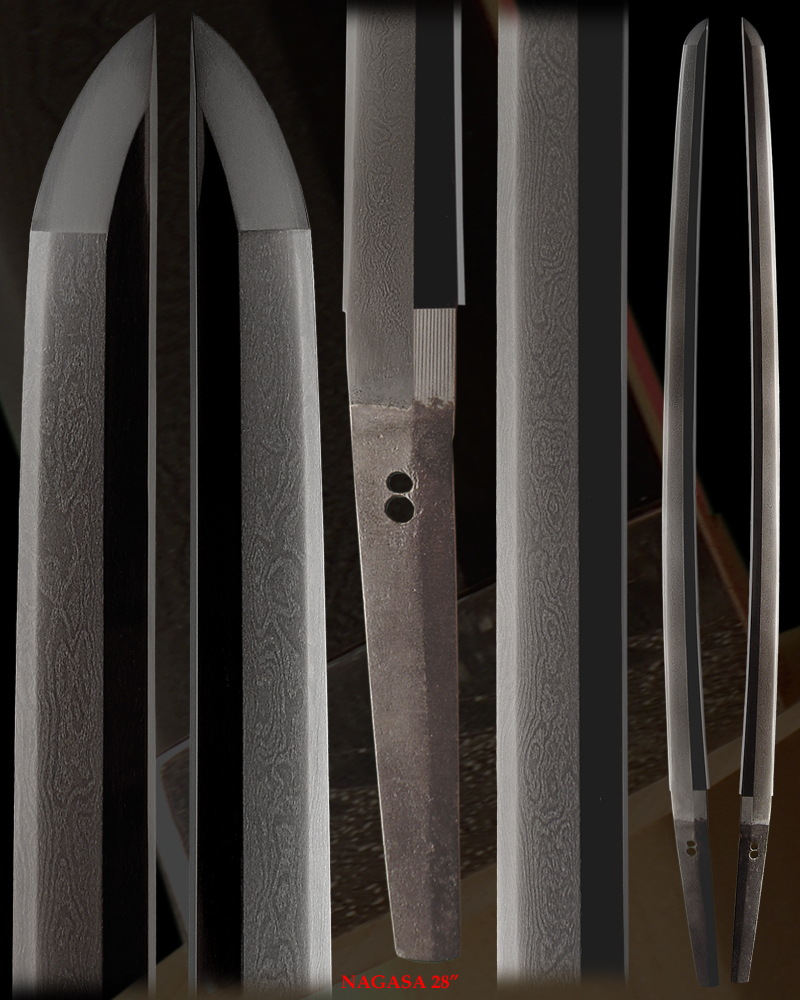 There is a story behind this blade from the the previous owner that brought it back from the war. As in many stories evidence to substantiate facts is hard to prove when it is mostly from memory, but I feel that this information should be shared with the future owner of this sword. A WWII vet brought this sword home with him after the war. Apparently the military mounts were damaged from a bullet that struck this sword at the handle. The handle was knocked of the blade on impact and all that was left was the saya. Since that time the vet displayed the sword in a display case. When the owner of the sword purchased the sword from the Vet years back he had misplaced the saya and habaki. On the nakago by the Munemachi on this sword you can see a small area that appears to substantiate this story. I find this to be a very interesting aspect of this sword overall.